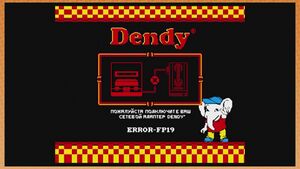 When booted, it showed only an error screen, showing a Dendy console and what looks like an acoustic coupler, with a blinking red X between them